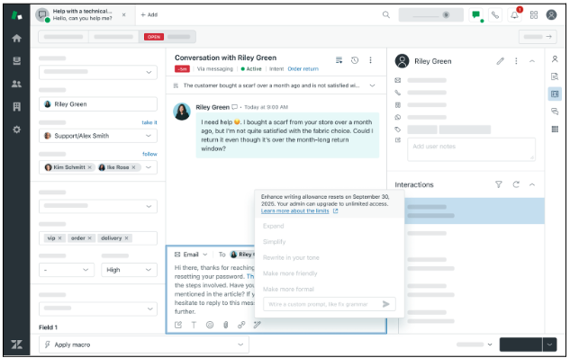 自 2026 年 2 月 16 日 起,Zendesk 将在多个 Suite 套餐中默认提供 Copilot AI 写作能力预览版。