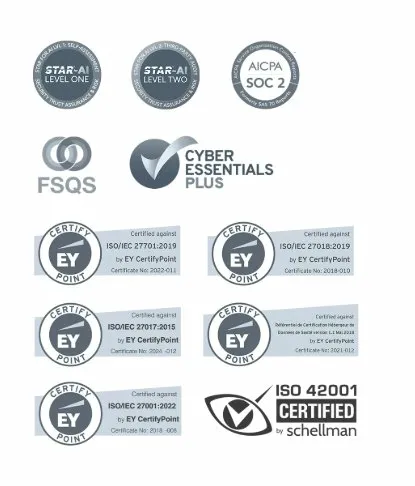 - Cyber Essentials Plus — 英国国家网络安全中心(NCSC)认证,通过技术审计验证核心安全控制